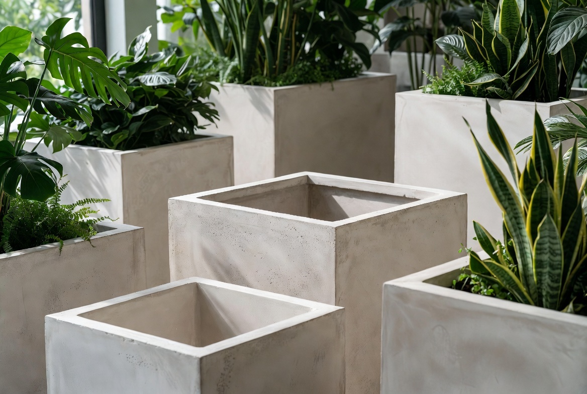 Настоящий микроцемент от Concrete Aesthetics — это многослойная структура. Мы используем высокомаркированный цемент, очищенный кварцевый песок и специализированные акриловые смолы. Если производитель экономит на составе, кашпо быстро начинает «цвести» (покрываться грибком) или крошиться от малейшего удара. Проверить качество просто: постучите по стенке изделия. Качественный микроцемент издает звонкий, «керамический» звук, в то время как дешевые смеси звучат глухо и рыхло.